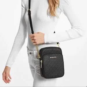 MICHAEL KORS Jet Set Travel Medium Logo Crossbody Bag Black signature co…
