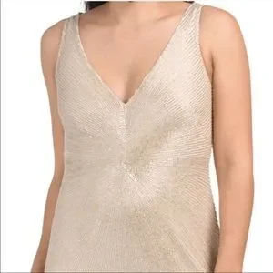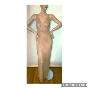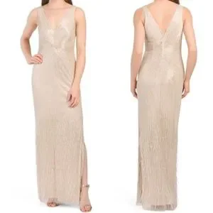 Aidan Mattox fringes V-Neckline sleeveless beaded gown dress