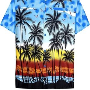 (1718) LA LEELA Men's Hawaiian Beach Button Down Casual Shirts 4XL