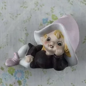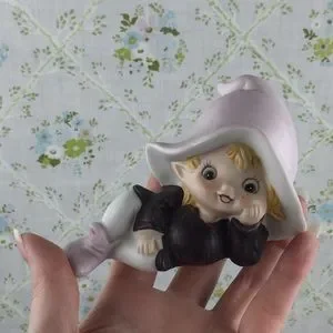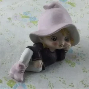 Vintage HOMCO Elf. Sweet ceramic pink/purple pixie. Adorable little freckled face! He would look so cute nestled among some plants or on a bookshelf. Really anywhere! See last pics for measurements. Bundle for a discount or make me an offer!