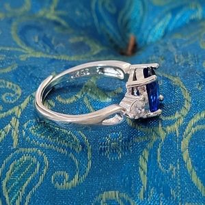 S925 Dark Blue & White Zircon Ring