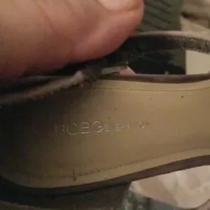 Bought at SteinMart some years ago and worn once to an outdoor wedding. Shoes are in good preowned condition but show some wear on the heel. See photos.