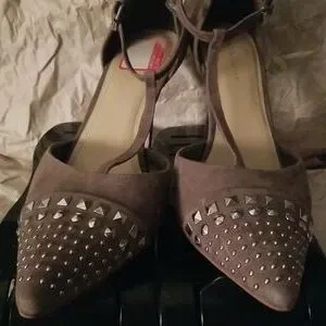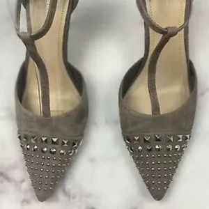 BCBGeneration Gray Suede Ankle Strap Silver Studded Pointed Toe Heels Size 10