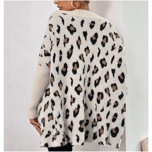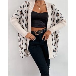 Cozy Leopard Print Fuzzy Open Front Cardigan