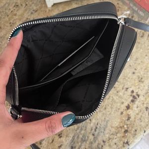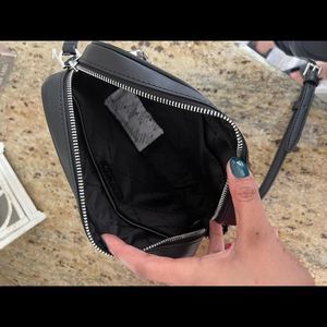 • Exterior details: detachable crossbody strap, back slip pocket, front slip and zip pockets