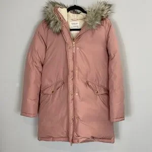 J. Crew Crewcuts Dusty Pink down puffer parka jacket fur hood trim
