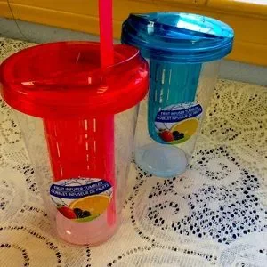 New with tags! Make drinking boring water delicious and fun to drink with these fruit infuser tumblers! Both are for sale. 2nred and 1 green in stock.