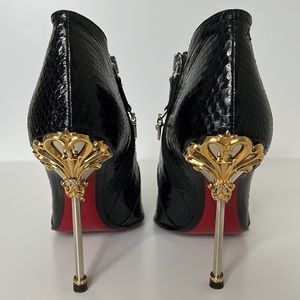 Cesare Paciotti Black Snakeskin Ankle Boots with Gold Silver Metal Heel
