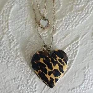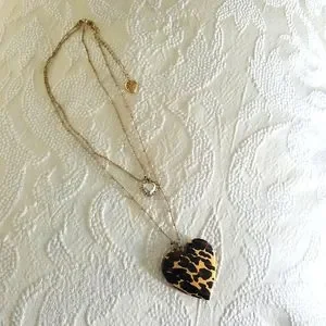 Vintage Betsey Johnson Leopard Print Heart Necklace