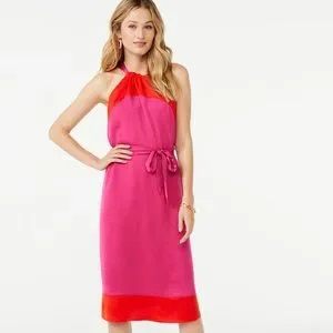 NWT Scoop Women's Halter Top Color Block Midi Dress with Tie at Waist