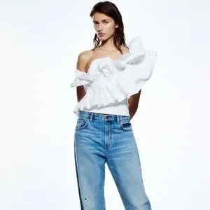 Zara Poplin Top with Ruffles. New with Tag. Bloggers Favorite.