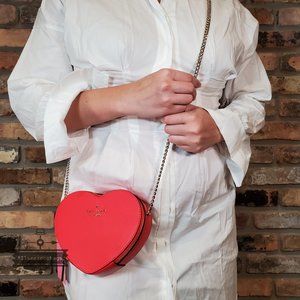 Kate Spade New York Cherry Pepper Red Love Shack Mini HEART Chain Crossbody Bag