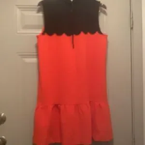 Victoria Beckham for Target Black and Orange Dress| Sz L | scalloped drop waist dress.