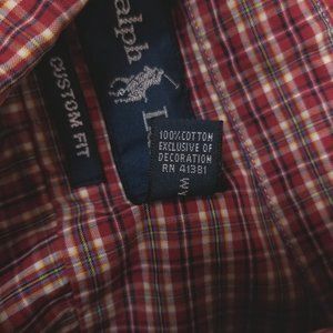 Ralph Lauren Plaid Cotton Custom Fit Shirt Red Sz Small
