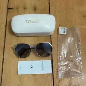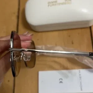 Diane Von Furstenberg sunglasses, blue tint lens, silver frame, brand new never worn.