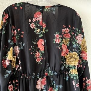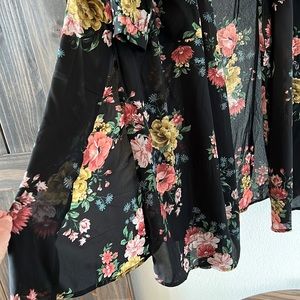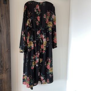 Torrid NEW black floral duster tie Kimono light weight flattering adjustable waste size 00