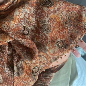 Brand new top from Zara that I just bought because I loved the vibe but not my personal style! It has both beaded and sparkly yarn detailing throughout the shirt, semi backless depending on how you tie it