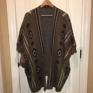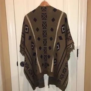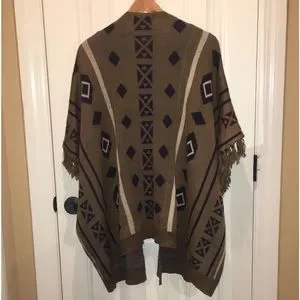 Very J women’s Small Boho Poncho Cover-Up, Southwestern Vibe, Tribal pattern