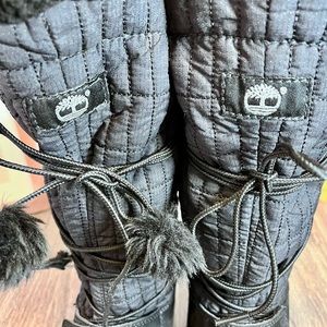 *🎉 HP 🎉Timberland | Black Leather Lace Up Fur Trim Mid-Calf Winter Boots S 7