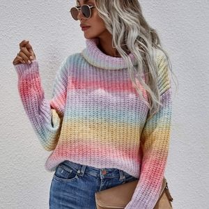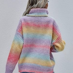Relaxed, loose fit Tie Dye Cowl neck sweater, features long sleeves, striped pattern. Pairs perfectly with your favorite jeans.