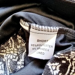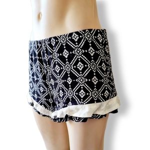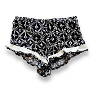 Black and white, vintage 2000's Y2k, low sitting, summer beach shorts with frill edges and white trim. Elastane around waist. Lined.