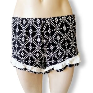 Black + white Y2k low sitting summer beach shorts with frill edges fits AU 4-10