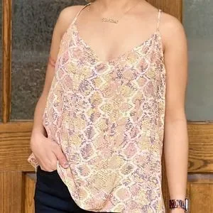 Anthropologie E By Eloise Medium Pink Orange Snake Print Tank 100% Silk