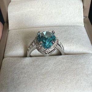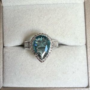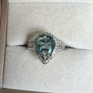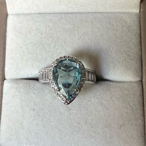 14k gold finish silver ring with London light blue topaz stone