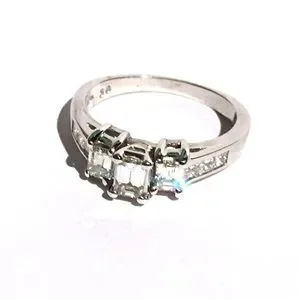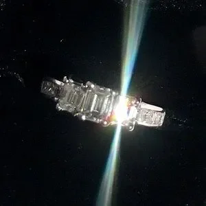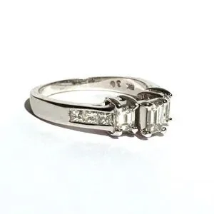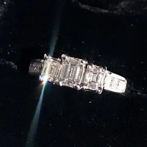 Beautiful bright stackable diamond ring. Bright and fiery! No cloudy diamonds! Three large natural Emerald cut with princess cut diamonds down the band.