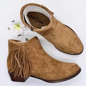 THE boot of the season. Make a statement in Minnetonka's Women's Blake Ankle Boots. Stylish suede uppers sport woven fringe to create an eye-catching look that is sure to draw compliments wherever you go. Padded insoles deliver the comfort you need for your everyday adventures. Rubber soles keep you surefooted. Inside zippers for easy on and off.