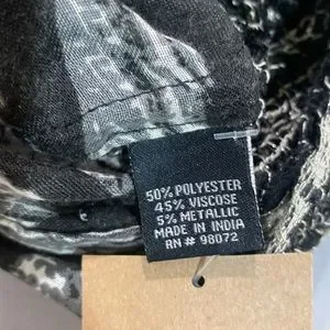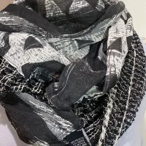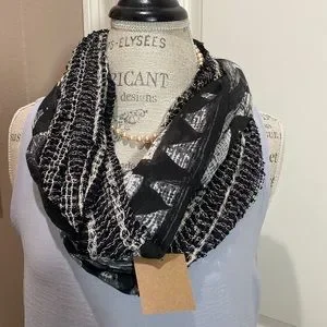 Black & Light Grey, 19” x 33” Aztec Design Scarf, NWT