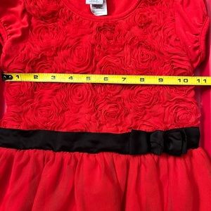 🎄Short Sleeve Christmas Top🎄Gently used beautiful top with tulle below the attached black bowed waistband. The top portion is a lifted rose pattern, with capped sleeves. Measurements in photos.🎄