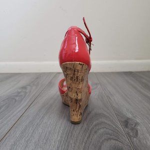 Guess Kalisa Open Toe Platform Wedge Sandals Patent Red Size 7