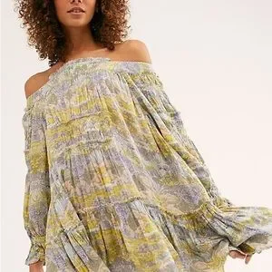 NWOT Boho-inspired mini dress featured in a shapeless silhouette and sheer lightweight fabric.