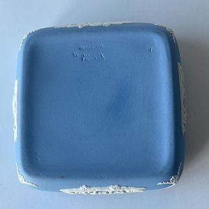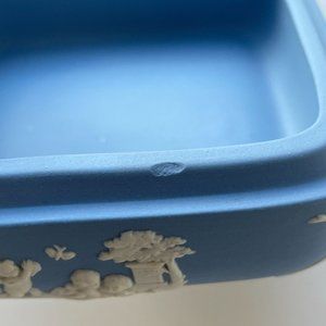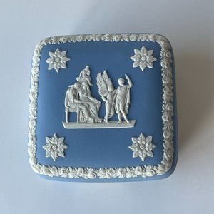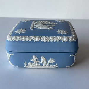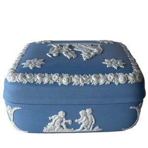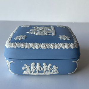 Wedgwood Jasperware Blue Square Lidded Trinket Box Cherub Cupid England