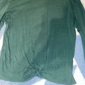 Size medium green long sleeve shirt with twist/tie detail on the bottom front worn maybe twice