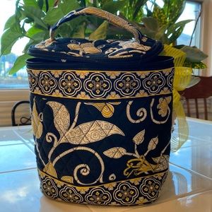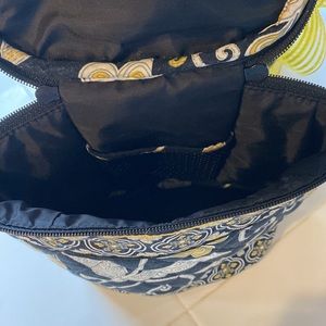 Vera Bradley small insulated tote used once black/yellow/white paisley design. Has two interior pockets. Would work great for travel bag for cosmetics as well.