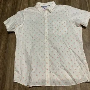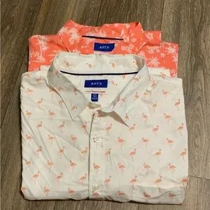APT.9 Short Sleeve Button Up Shirt. Color is White with Pink Colored Flamingos. APT.9 Short Sleeves Button Up Shirt Pink/ White Palms “BUNDLE OF TWO”