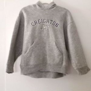 1 Hooded Light Gray Sweatshirt - Size (4T) - 90% Cotton - 10% Polyester - Preloved - Good Condition, only issue is a stain on wristband of one sleeve. (See Pic)