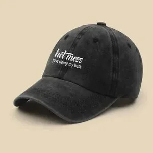 #29 Vintage Wash Black Hot Mess Graphic Baseball Cap