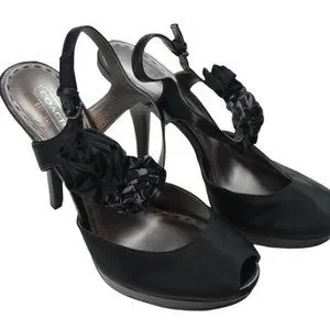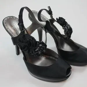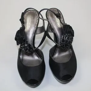 Coach Addysen Black Satin Rosette High Heels Peep Toe Womens Shoes Size 8 8B