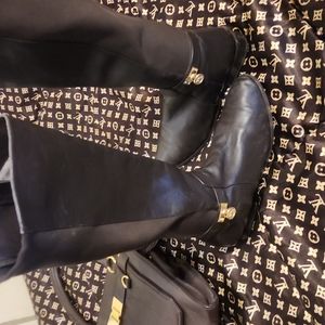 Leather English riding boots by Michael Kors good condition some signs of wear and tear leather handbag by mark with brass accessories.
