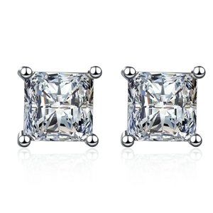 Certified 4ct. t.w. Diamond Moissanite Princess Cut Stud Earrings NEW