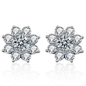 Certified 1ct. t.w. Diamond Moissanite Sun Flower Stud Earrings NEW J