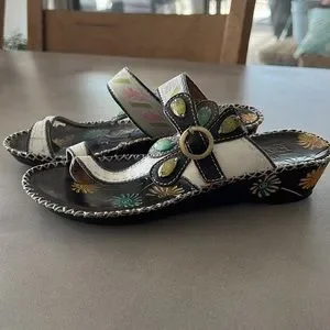 Gently worn womens size 35 L’ Artiste sandals. These sandals have such amazing details. They are beautifully made and very good quality! Super cute sandals that would dress up any outfit!