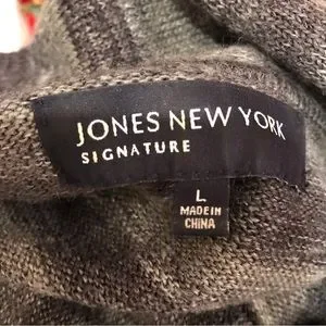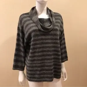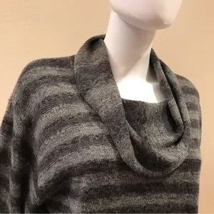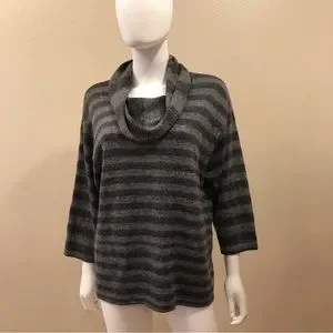 Jones New York Cowl Neck Sweater Womens Large Grey Stripe Acrylic Wool Blend