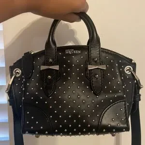 Alexander McQueen Women's Black Mini Legend Leather Crossbody Bag embellished studded top handle