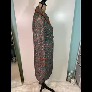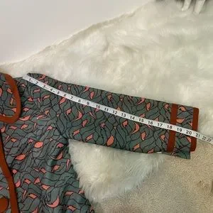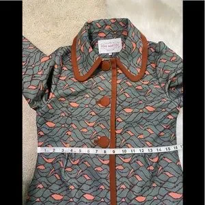 Excellent condition. Front button closure. 70% Polyester/30% Rayon.