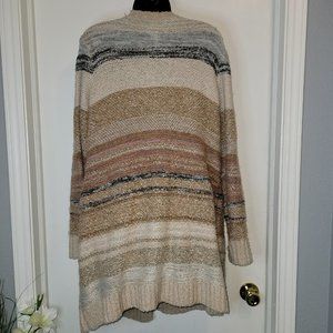 Multi colored cardigan sweater in soft tans and pinks in a size 2X.