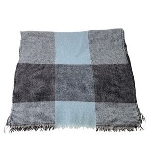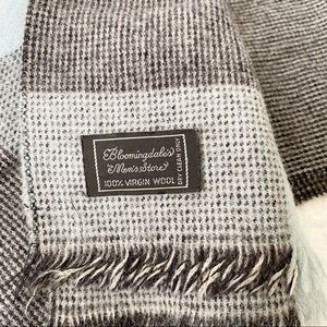 Bloomingdales Men’s Store Tartan Plaid 100% Virgin Wool Scarf Blue Grey One Size